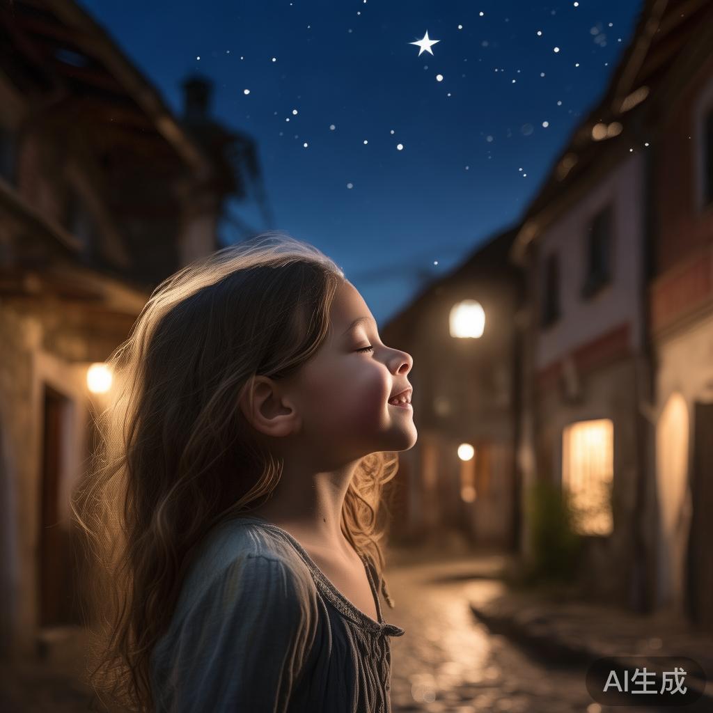 此时,小女孩的思维开始飘向远方,她天真无邪但又充满憧憬,难道这颗星星不是每一个梦想者的投影吗?它像是夜幕中的引导者,提醒着我们——即便在人生的黑暗时刻,总有光芒指引前行。这一刻,我忍不住思考:我们的梦想是否也能如星星般璀璨,只需敢于追逐,将其点燃?